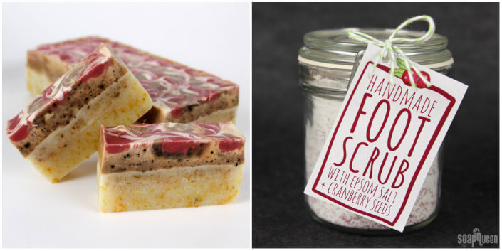 Bottom Row: Handmade Soap for Gardeners, Cranberry Seed Foot Scrub