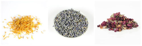 My favorite additives to soap right now are clays; here is a great starter pack of clays that add color to soap. A fantastic way to give your soaps color and texture is by using natural herbs and botanicals. A few of popular options are Marigold Petals (left) Lavender Buds (center) and Rose Petals & Buds (right). They add interest to any bar of soap – even when just sprinkled on top.