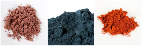 Indigo Powder (center)Extracted from the leaves and stems of the indigo containing plants, this natural colorant gives your soap a soft blue hue. For a darker blue we suggest reconstituting the indigo powder in your lye solution.  Using a palm free cold process recipe will help to achieve a more consistent coloring of the soap.