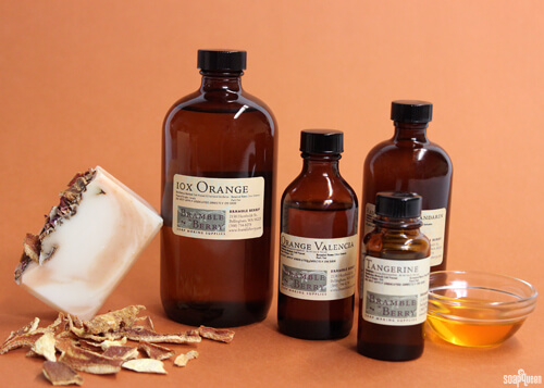 Produced from the peel of the orange fruit, orange essential oils are well known for their bright and fruity scents. Popular in a wide variety of projects, orange essential oil is commonly used in cleaning products. Bramble Berry carries four varieties of orange essential oil: Orange Valencia Essential Oil, 10X Orange Essential Oil, Red Brazilian Mandarin and Tangerine Essential Oil. All are fantastic, but have various properties that make them distinct.