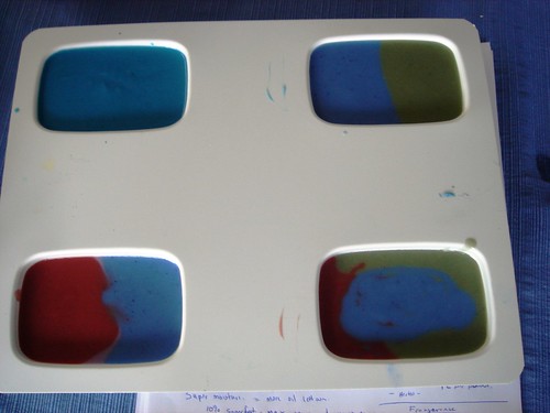 I also tested a lovely Green Apple fragrance and did a two color swirl with Fuscia Labcolor and a green test color. Notice the lovely green? Yeah, neither do I. The green disappeared within three minutes. That’s one green color we won’t be adding.