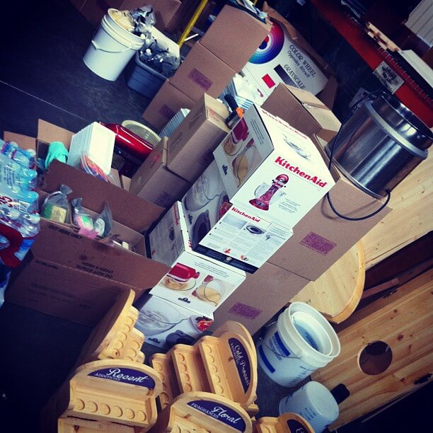 And, once everyone left, the team went back to work to load up the trucks and get the soapmaking space ready for Cold Process Immersion tomorrow. When I said we had been pulling product for a week just for the class, I wasn’t joking. Look at all those supplies!