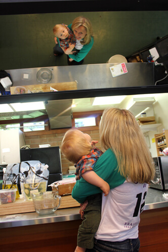 In the afternoon, our apprentice soapmaker-in-training, Mr.  Jamisen stopped by for another visit after his 3 hour long (!) morning nap. He was pretty excited about the giant overhead mirror.