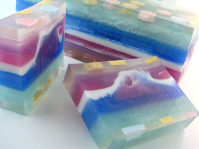 I came across these photos from soap I made this summer. I just love the positive hope expressed in the colors. It makes me realize that spring will be here soon enough and that the sun truly will come out, if not tomorrow, in a few months.