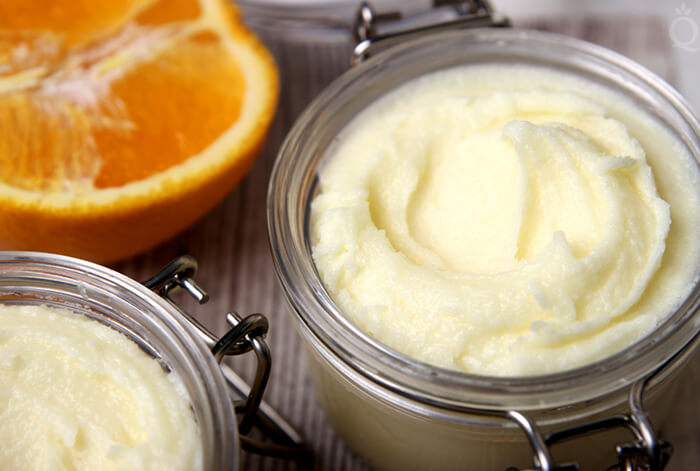 This scrub is popular because it’s easy to make and has an irresistible scent from Orange Peel Cybilla Fragrance Oil and orange butter. Using it in the shower is a treat. It smells fresh and citrusy, and the sugar and Foaming Bath Butter leave your skin feeling nice and clean. You can’t go wrong with this recipe.