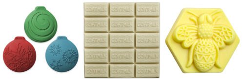 We added three new molds for your melt and pour & cold process soaping (or chocolate or plaster or wax crafting). We couldn’t help but add the Ornaments Mold, and the Guest Goat Milk Tray Mold and an art-deco inspired Filigree Bee Mold were too cute to pass up.
