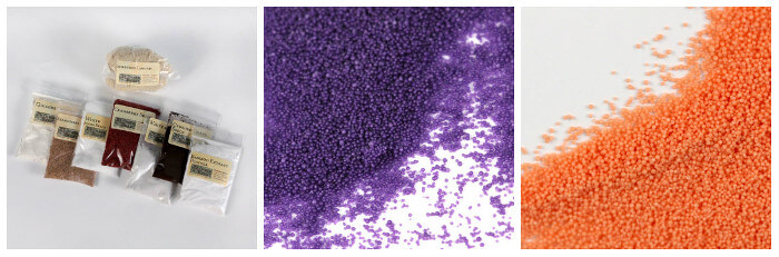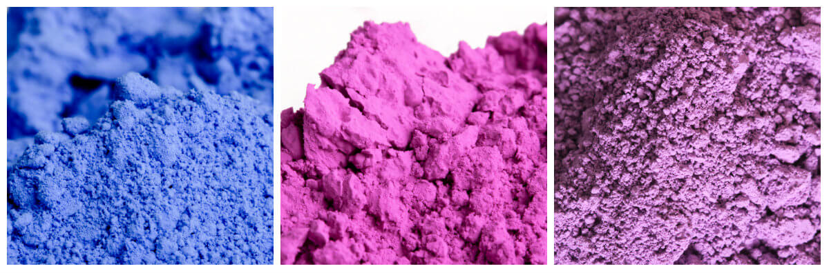 Left to right: Bright Blue Jean Colorant, Radiant Plum Colorant, Ultramarine Lavender Pigment