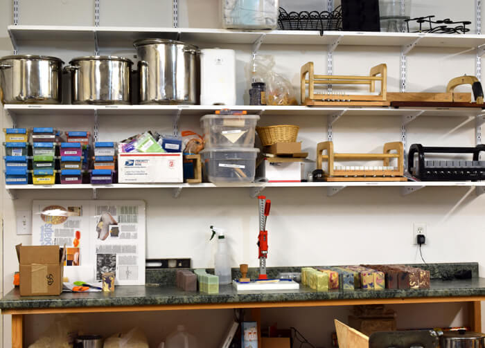 Robin’s work space now includes plenty of shelving for molds and other tools and ingredients.