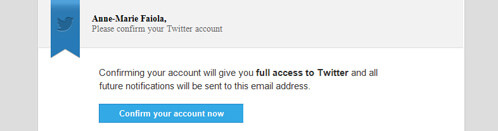 THREE: Once you’ve submitted the correct information, you will get an e-mail at the address you provided asking you to confirm your account. You need to confirm your account in order to access Twitter and get notifications. The e-mail will look similar to the photo below, so don’t delete it!