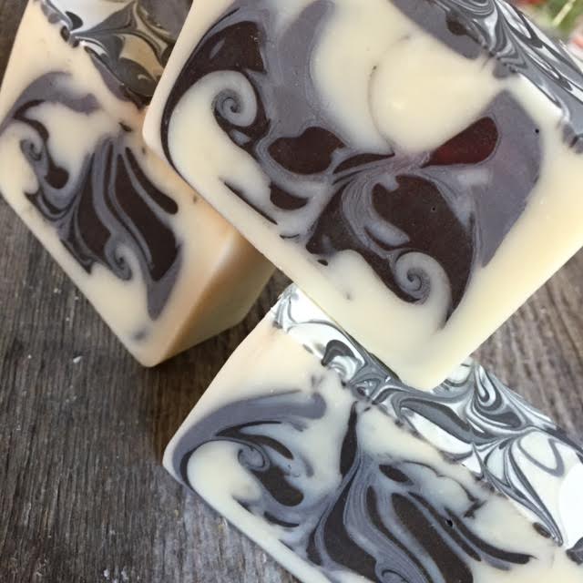 Melissa of Hallowell Soap Works creates beautiful cold process soap, and is known for her distinctive "strong arm swirl." Read her interview to learn about her creative process and business tips!Melissa’s beautiful and unique “strong arm swirl” in the Tall, Dark & Handsome cold process soap.