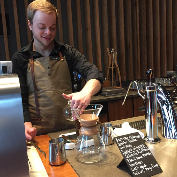 3. It’s the storytelling. The coffee ambassadors at Starbucks Roastery rattle off the virtues of the particular rare coffees they are brewing and serving that day; everything from where it is grown (Pango Pango for me), to the flavor profile (spicy herbal notes), to the schools that Starbucks has helped to build for over 100 Sulawesi families. This sense of place evoked a feeling, a richness of experience that anchored me more in the “this is special, this is to be savored,” feeling that the Reserve store is designed to produce.