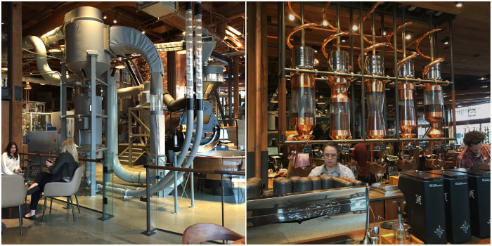 RoasterFrom the moment you walk into the Starbucks Reserve Roastery, everything is elevated; there is someone that greets you to tell you about the store, there are maps, there are Tom Douglas-created kale salads and there is exclusive, carefully curated non-Starbucks and Starbucks Reserve merchandise. After you wind your way through the coffee house, there are a set of oversized stairs that lead down to the actual tasting bar.