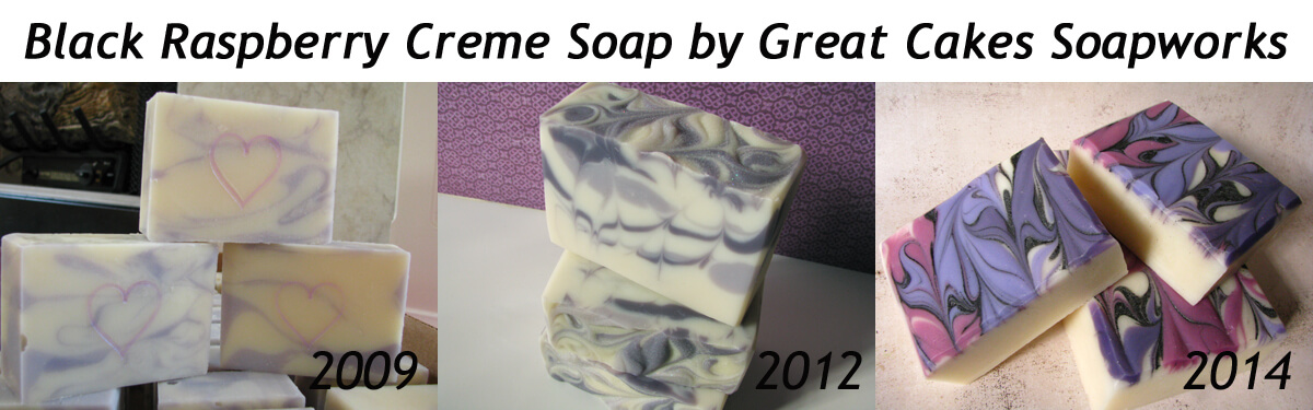 It took me a long time to start experimenting with fancy soap designs. Here are some of the progressions you can see in my soapmaking techniques over the years: