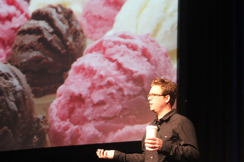 The founder of Twitter, Biz Stone, (that’s me and him above) kicked off the event with his first-hand account of building Twitter. He was super funny, approachable and down to earth. An example of his humor? He told the story about how, early in Twitter’s infancy, people kept complaining to him that “Twitter wasn’t useful”. He quipped “Well, neither is ice cream. So what? We’re makin’ someting. We’re liking it. Why do you have to keep calling us and saying it’s ‘not useful.’ Quit calling us. ”