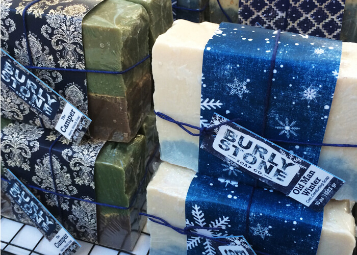 Burly Stone Soap Co. creates soap specifically for men, with large bars and unique names.
