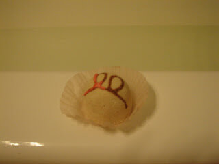 The ingredients for the Bon Bon are: baking soda, citric acid, cocoa butter, shea butter, mango oil, almond oil, grapeseed oil, fragrance, color, sugar