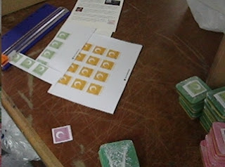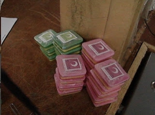 All the labels for the soap were done on full-sheet labels. The labels were cut out by hand and painstakingly peeled apart (thanks Cheriss!)