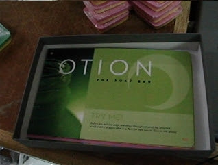 Each of the press kits contains a letter from the founder, an Otion FAQ sheet, 1 bar of soap, and a full color/full bleed 8 page glossy about Otion. The special feature with the glossy is a perfume vials on each page. The vials are filled to the brim with our best or most unique fragrance oils. Shew Design did the initial design work for the glossy insert, including the genius idea of including the fragrance vials.