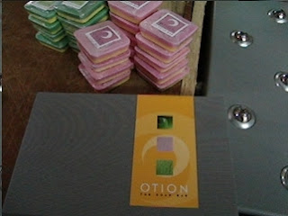 Each of the press kits contains a letter from the founder, an Otion FAQ sheet, 1 bar of soap, and a full color/full bleed 8 page glossy about Otion. The special feature with the glossy is a perfume vials on each page. The vials are filled to the brim with our best or most unique fragrance oils. Shew Design did the initial design work for the glossy insert, including the genius idea of including the fragrance vials.