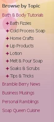 The sidebar to the left of the Soap Queen blog guides readers to different categories of posts. We cover a wide range of topics that fall under the general umbrella of creating bath & body products.