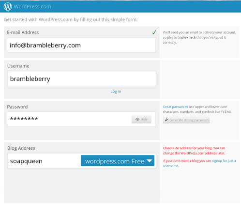 A blog is a an informational website that typically focuses on a particular niche (such as soaping, crafting, fashion, gardening or just about anything else). Blogs are a solid way to reach others in your community to interact, share experiences, learn from each other and even meet. We chose WordPress in particular because it allowed us to customize everything, from the look and feel of the blog to specific features in the commenting system. WordPress also has superior SEO prowess (search engine optimization), which means your blog will show up in more search results. Another popular blog-hosting platform is Blogger, but for the purpose of this tutorial we’re going to walk you through creating a WordPress. If you are torn between the two, this blog post goes into more detail about the differences of the two blogging platforms.