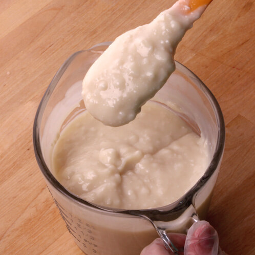 After we stick blended this batch, the batter started to seize. This is true seizing because the texture was beyond that of pudding like the other two; at this point it almost looked like gritty Play-Doh. Yuck!