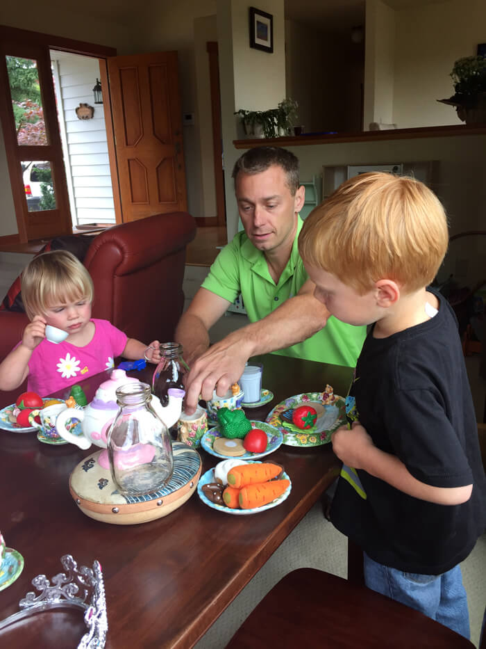 While I’ve been training for my half-marathon, Chris is training for his full marathon. He is an accomplished runner and actually decent at it (unlike me; I have a long love-hate relationship with running). His pipe engineering and fiberglass inspection business is going gangbusters with the addition of some ROV (remote operated vehicles), push cameras (for going down pipes) and a microwave technology that measures pipe thickness. It means more travel and weekend work for him but as anyone that is self-employed knows, ya’ gotta’ get while the getting is good! He makes lots of time for quality family time though and the kids love playing creatively with him.