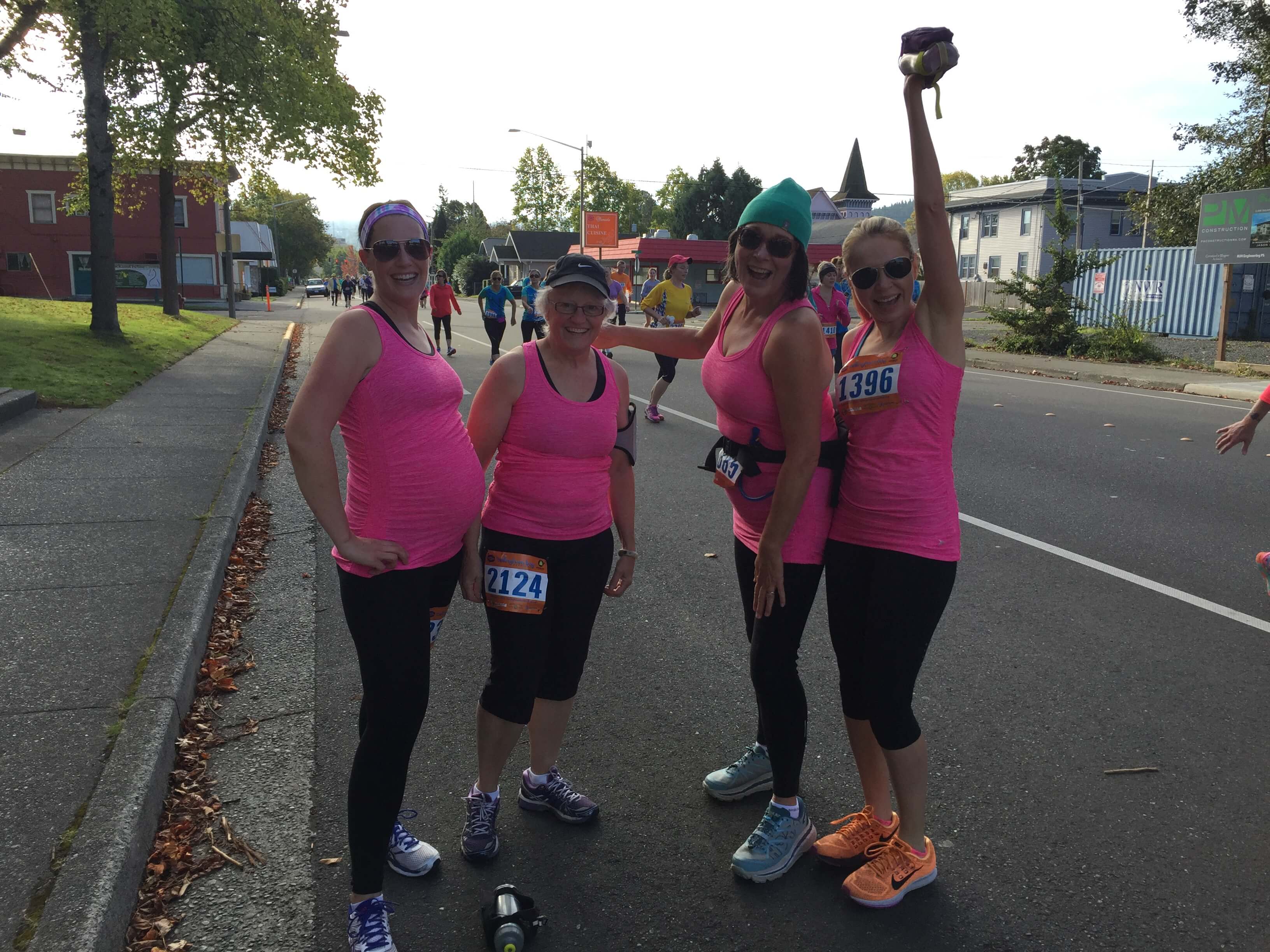 Our full non-official team was thrilled at the end. Raven, Lisa’s daughter, joined us in colors and at the finish line. She was racing for time (2 hours!) and the rest of us were racing just to cross that finish line. Big thanks to my sweet husband for watching the kids during training runs and my folks for coming up to support (and to take the great action shots!). It was a great day and a check-mark for the bucket list. More importantly, we all finished a race that we committed to. That felt really good. I’ll be stretching a lot tonight and trying not to hobble into work tomorrow. Happy weekend everyone!
