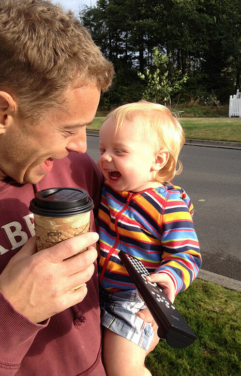 I think it is a genetic trait for men to have to be in controll of the remote…this only goes to prove that! He is so very cute with or without the remote!