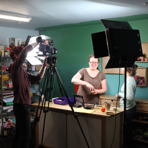 Lights, camera, action! The team and I spent this morning filming not one but three episodes of Soap Queen TV. We filmed a cold process recipe, a melt and pour project and finished off with three shades of lipstick. We even had time to squeeze in a helpful Soap Queen TV short (hint: it will make cleaning those oily lipstick containers a breeze!). Look for these brand new episodes coming in 2014!