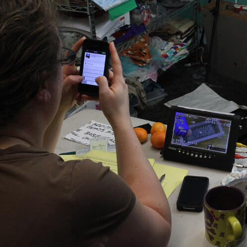 Kirsten, our on-set Gal Everything, making changes to the script right at the last second.