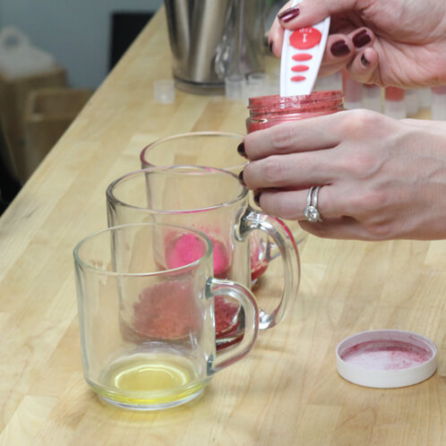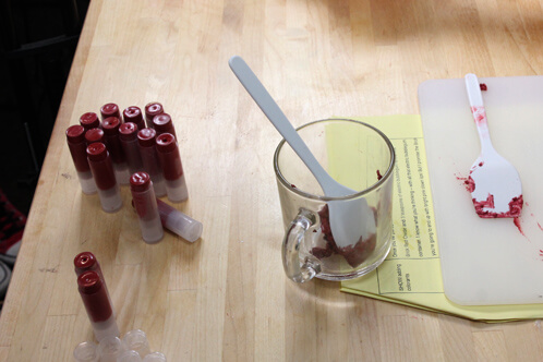 The bright colors for the lipstick were made with a combination of Cellini Red Mica, Electric Bubblegum, Brick Red Oxide and Coral Mica.