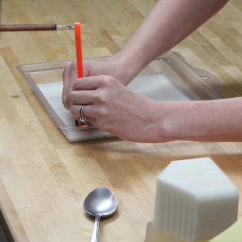 Making the dots for the super cute domino melt and pour soaps. This project uses a combination of Honey Melt and Pour and Goat Milk Melt and Pour.