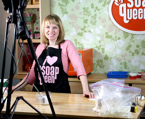 I really wanted to wear this adorable cupcake apron but Amber (I like to call her the ‘SQTV producer‘ though during the regular week she’s our Marketing Guru) said it would be too busy and detract from the soap projects.