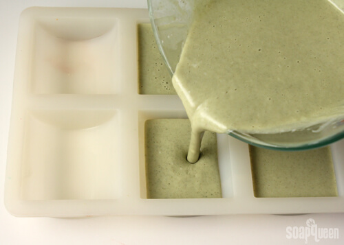 Thank you so much. I made the tea tree and rosemary bars last night and wrapped them right after unmolding and the look nice and smooth. The bars are decidedly darker on the bottom side with more visible sediment from the clay and olive powder. This is still very attractive. Would I have lessened this differential if I had poured it a little later (cooler), thanks again for your excellent info and suggestions.