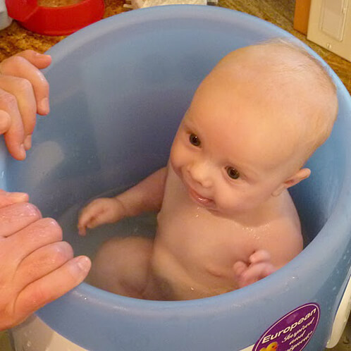 He ADORES his baby spa. He gets more clean in the shower (those dang neck folds are easier to get clean in the shower!) but he loves his hot tub so much that we do that with him every other day and then the shower on the other days.