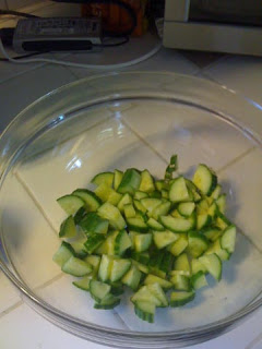 The whole thing is a lot of food prep if you don’t have a Cuisinart (I don’t. Mom and Dad, if you’re reading this, maybe that would be a good birthday present?) But, it’s a delicious recipe. I even shopped at the local organic store yesterday and all of the produce was farm fresh and locally sourced.I’ve made this salad before and it was a huge hit. So, though I was crying profusely by the time the onions were chopped, I tossed them all in.