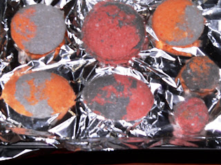 In an attempt to get a very seasonally appropriate color theme, I tried a variety of Blacks (from mica to labcolors) and never quite got the color I wanted which is how we went from the garish colors on the left to the gloriously sweet colors on the right.