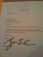Thank you to everyone that sent Kyle (www.kyleroger.blogspot.com) cards from this post. Even President Bush sent Kyle a note, saluting him for his bravery! Kyle and his brother Nicolas really enjoy opening the cards and seeing just how many people are supporting them.