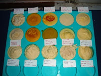 We put her through a “normal” retail day. She opened the store and learned how to count a till, helped out customers and designed retail displays. In addition to normal busy work, she made 10 pounds of soap (her first soap ever!) and the 15 baby test batches pictured above. Here she is, peeking on a five pound batch we made earlier during the day.