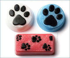 These soaps were made by Kay from Russia. The color combinations are striking and filling in the baby pawprints takes a steady hand and extreme patience.