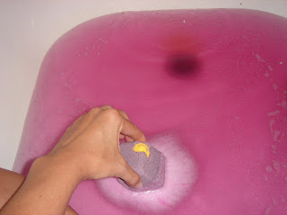 The product does turn the bathwater a shocking color of pink. It didn’t stain me or the tub. And the pink color was somewhat soothing.