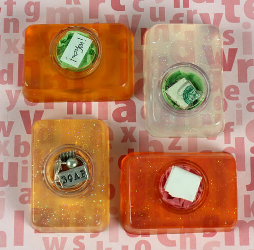 Danni’s Comment: “A couple of years back- I put my now sister in laws engagement ring in a bar of soap for my brother. The joke was they had been together so long (8 years) that he wanted her to wait a little longer. He didn’t tell her it was in there either. I did one layer with a pic of them together on the soap but the ring was in a white layer. She completely freaked butt naked in the shower and called me as soon as she saw it. LOL It was a cute idea at the time I thought. She still talks about it to this day. “