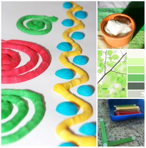 Left: Need a fun indoor activity? Check out this awesome homemade microwave puffy paint. It’s just flour, baking powder, salt and food coloring so it’s super easy to clean up too!