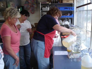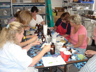 I taught a beginning cold process soap class at Otion tonight. It was a wonderful class with students from Arizona, Tacoma (WA) and Portland (OR). We had 7 students, two of whom had made soap. It’s always a joy to have experienced soapmakers in class so they can augment my instructions.