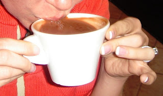 1. What a great day! That drinking chocolate looks heavenly! I like the glasses, too. Sad about the cupcake! Hopefully the next one will be excellent!
