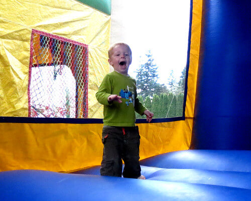 Jamisen got into his first bouncy tent last weekend (at the Greek Food Festival in Bellingham) and jumped, and laughed and jumped and laughed. He had the best time. It took some serious patience on the part of my husband and the help of an older child to coax him in but once he went in, he was totally hooked and didn’t want to leave. He has so much energy that bouncing and jumping for a long time did absolutely nothing to diminish it.