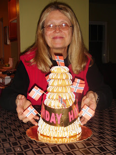 This is my Mom on her recent birthday, celebrating with the traditional Norwegian Kransakage. She is the sweetest, nicest and most kind-hearted person I know.