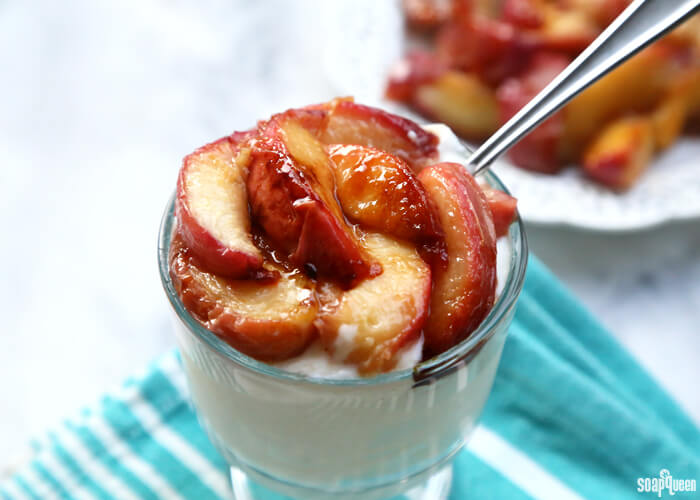 I love to eat these peaches warm on yogurt, or ice cream if I want to indulge. They are also delicious on top of pancakes or granola or, yum, on crepes (seriously, drooling right now thinking about a great European-style crepe with these peaches rolled up inside). Ripe peaches work best, but if your peaches are still firm, the roasting process creates a soft texture and sweetness. I can’t wait to try this technique with other fruits like strawberries, pineapple or even apples.