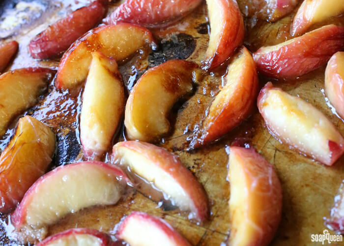 - Transfer the peaches to a cookie sheet. Sprinkle the peaches lightly with salt. Place in the oven for 15-20 minutes. The peaches should be soft, and the honey should start to thicken. Turn on the boiler to high, and allow the boiler to caramelize the peaches. This only takes a few minutes, so don’t walk away after turning on the boiler! Remove from the oven and allow to cool slightly. Enjoy!